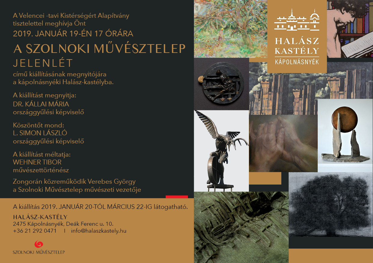A Szolnoki Művésztelep Jelenlét című kiállításának megnyitójára 2019. január 19-én, 17 órától kerül sor a kápolnásnyéki Halász-kastélyban.